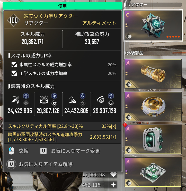 リアクターは氷工学・クリ倍暗黒です。激突モードの軍団は恐らく暗黒になります。
