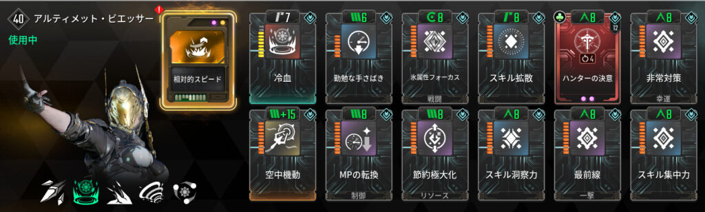 冷血と節約極大化のコスト軽減が肝です。このゲームはクールダウンと同じく、コスト軽減も効果を重ねるほど性能が飛躍的に向上していきます。
