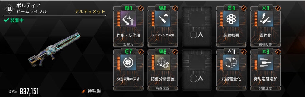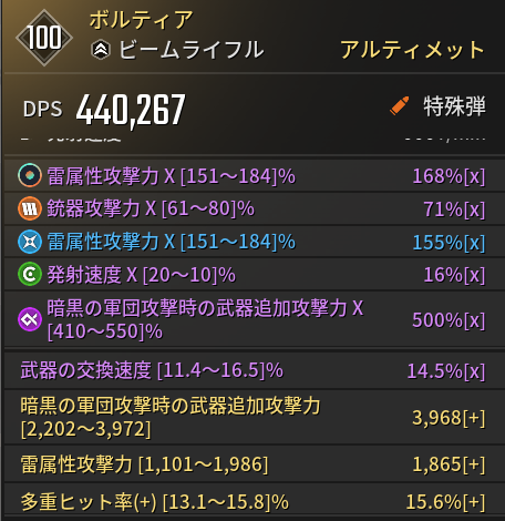 コアは雷2つ・銃器攻撃力・発射速度・暗黒、オプションは暗黒が必須です。