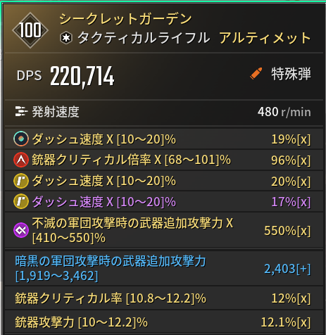 クリ率は必須で、ベストはクリ率・クリ倍・特異ダメージマイナスだと思います。クリ率は100%と99%で※大きな差が出るので、可能な限り100%にしたいです。